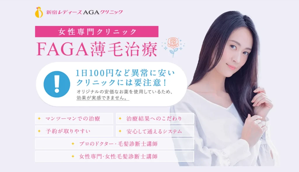 女性の薄毛(FAGA)は早期の専門治療が大切ですが、費用や効果、女性の悩みに寄り添ってくれるかで失敗したくないですよね。