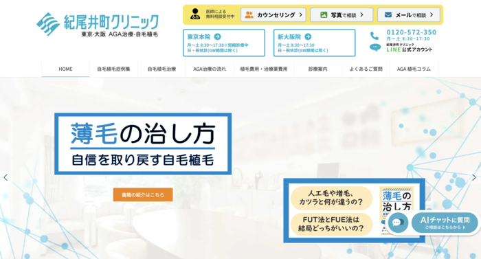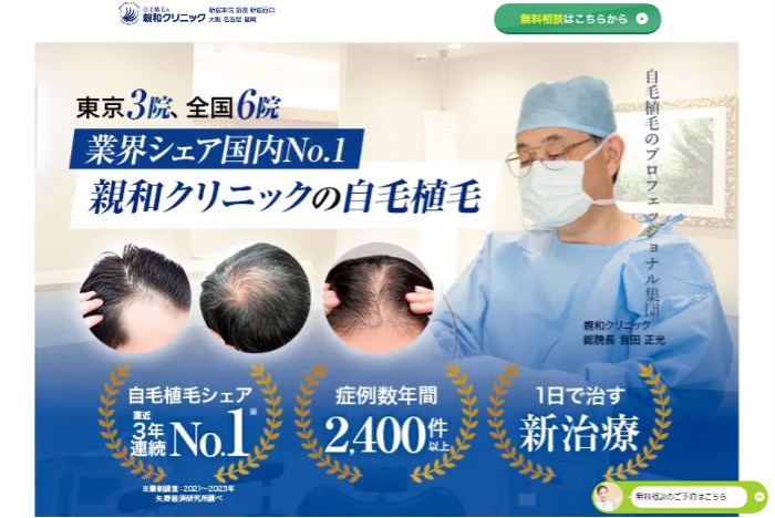 親和クリニックは、全国6院(東京都内3院)を展開する、自毛植毛クリニックです。