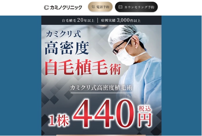 カミクリ式自毛植毛は1株440円~と、最大のコストパフォーマンスにも自信を持っています。